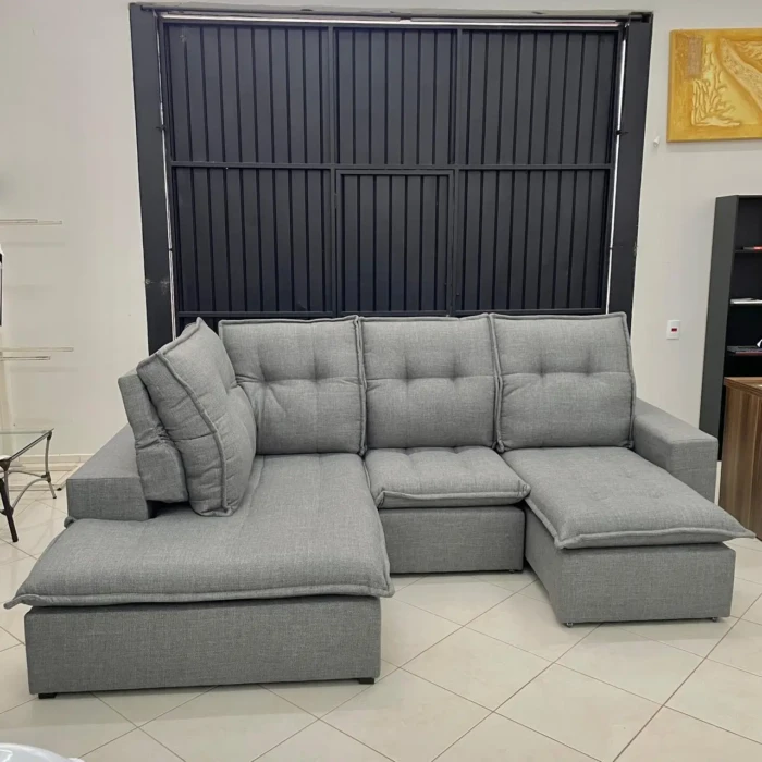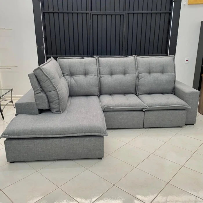 Com um canto puff que torna o sofá mais elegante e moderno, trazendo integração para o ambiente.