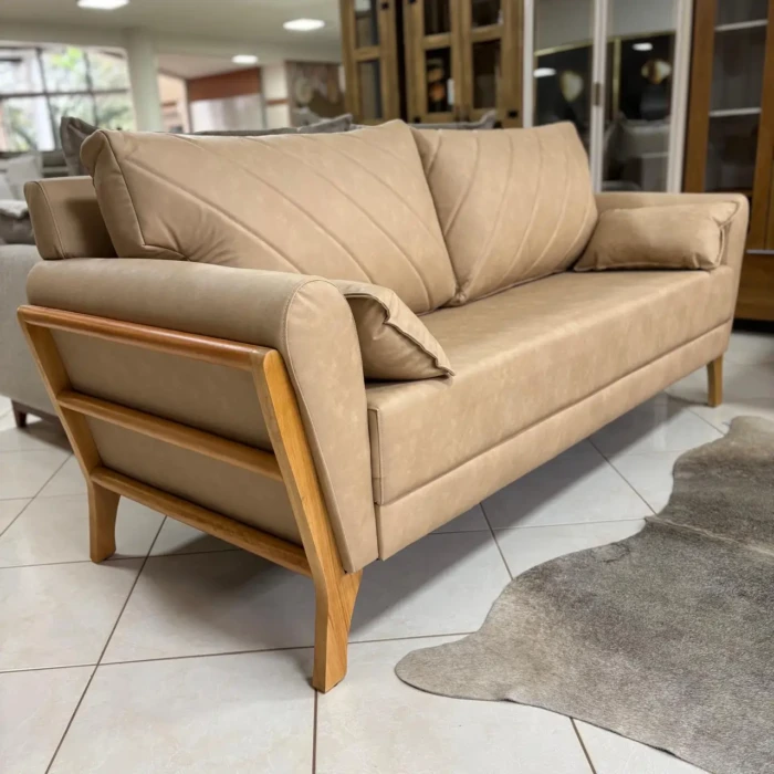 Fabricado em couro ecologico Omega Bege: Praticidade para limpeza do seu dia a dia e um aspecto de muito requinte.