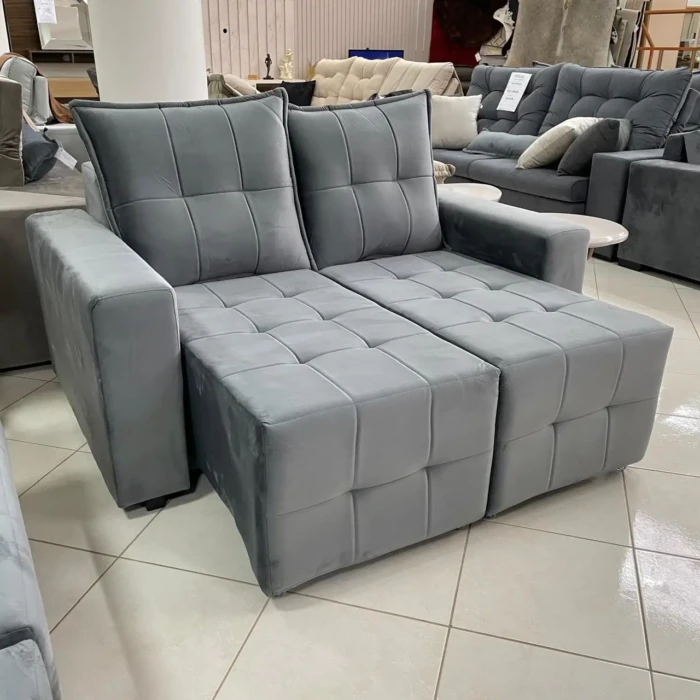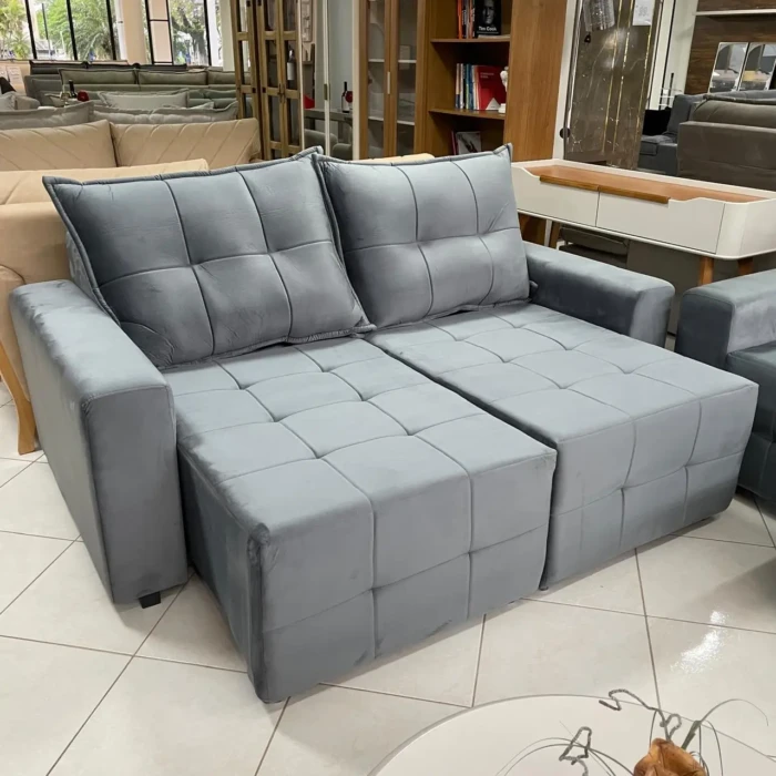 Com assentos retráteis e em Tecido em Veludo Cinza, une conforto com um excelente custo beneficio